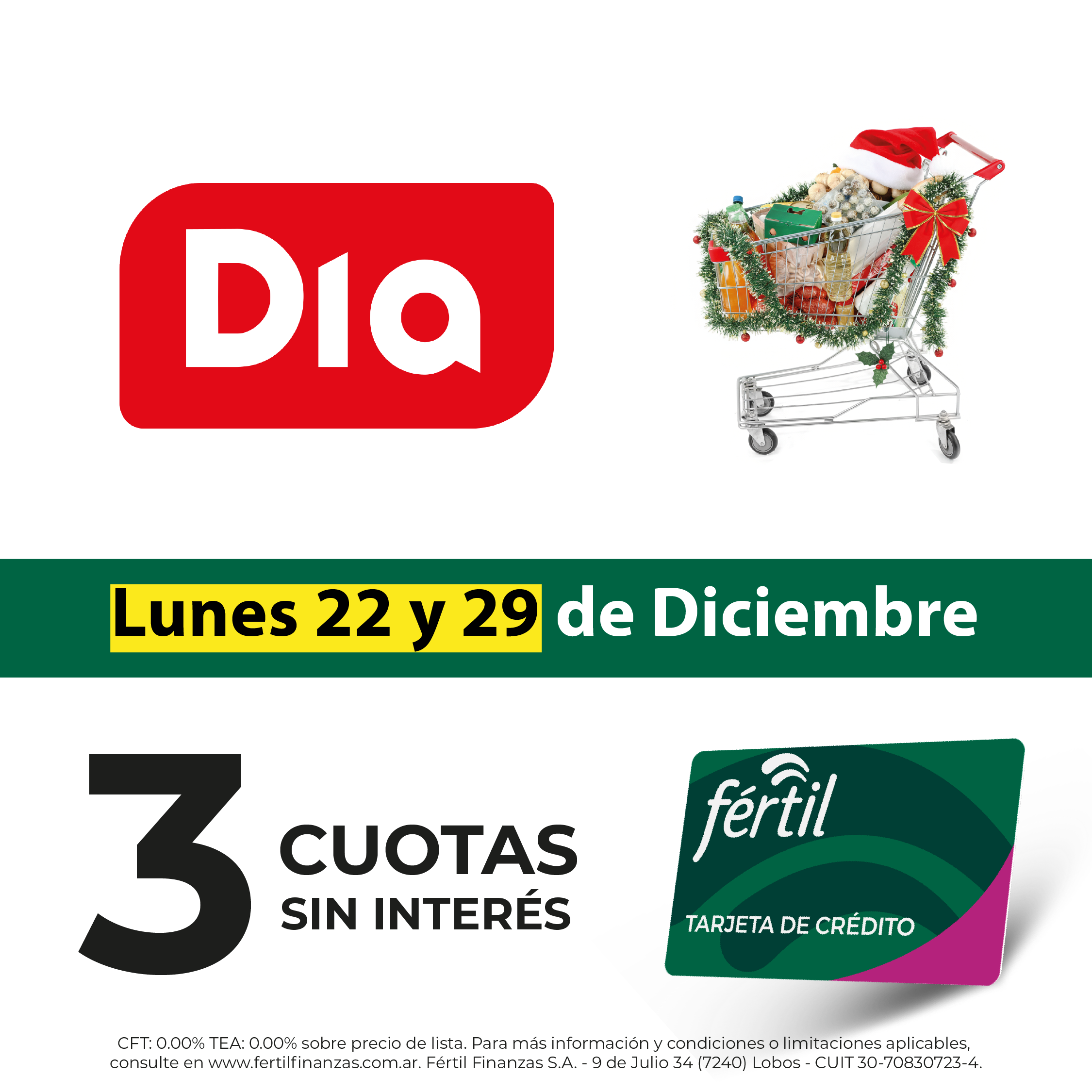 En 3 cuotas sin interés en Supermercados Dia.